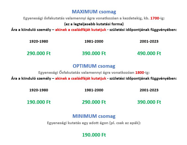 A dokumentációs anyagban szerepeltetjük a felmenőkkel kapcsolatosan talált